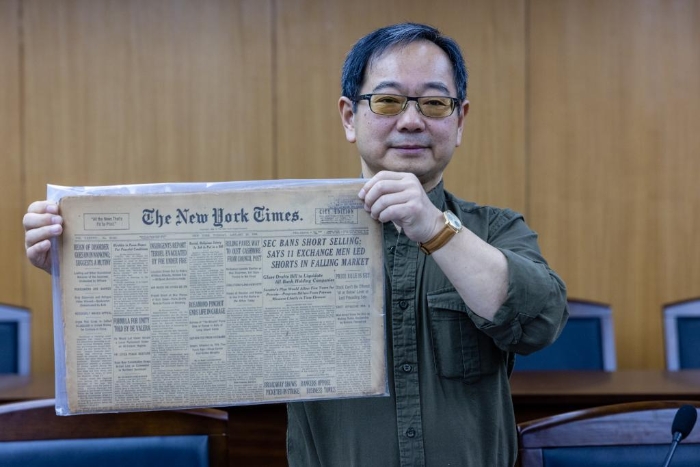 魯照寧在展示本次捐贈的文物史料。 侵華日軍南京大屠殺遇難同胞紀(jì)念館供圖