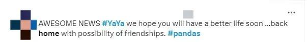 如今,“丫丫”終于可以回到家鄉(xiāng),有很多外國網(wǎng)友紛紛表達思念之情。