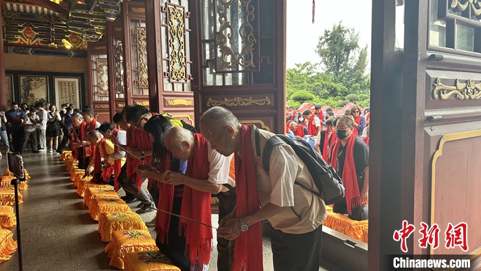 中新網深圳4月28日電 (記者 朱延靜)“祈迎天后圣誕儀典現在開始……”4月27日,深圳南山天后博物館舉行“晨拜媽祖”儀典,來自臺灣臺南、高雄的逾百位媽祖信眾參與祭拜。