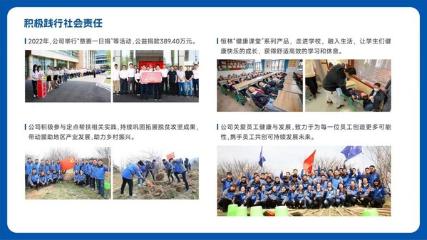 在社會(huì)慈善事業(yè)方面,恒林積極踐行慈善公益,開(kāi)展助學(xué)等公益活動(dòng),傳遞溫暖與希望。2022年,公司舉行"慈善一日捐"等活動(dòng),公益捐款389.4萬(wàn)。公司在為客戶、員工、股東、社會(huì)創(chuàng)造價(jià)值的同時(shí),關(guān)注弱勢(shì)群體和困難群眾生活,積極響應(yīng)安吉縣"我為扶貧出把力"號(hào)召,公司積極參與定點(diǎn)幫扶相關(guān)實(shí)踐,持續(xù)鞏固拓展脫貧攻堅(jiān)成果,帶動(dòng)援助地區(qū)產(chǎn)業(yè)發(fā)展,助力鄉(xiāng)村振興。
