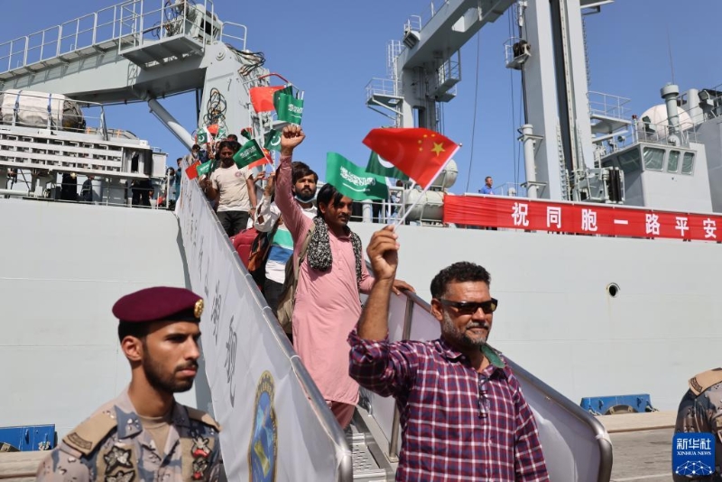 4月29日,從蘇丹撤離的巴基斯坦公民乘坐中國海軍微山湖艦抵達(dá)沙特阿拉伯吉達(dá)港。新華社記者 王海洲 攝
