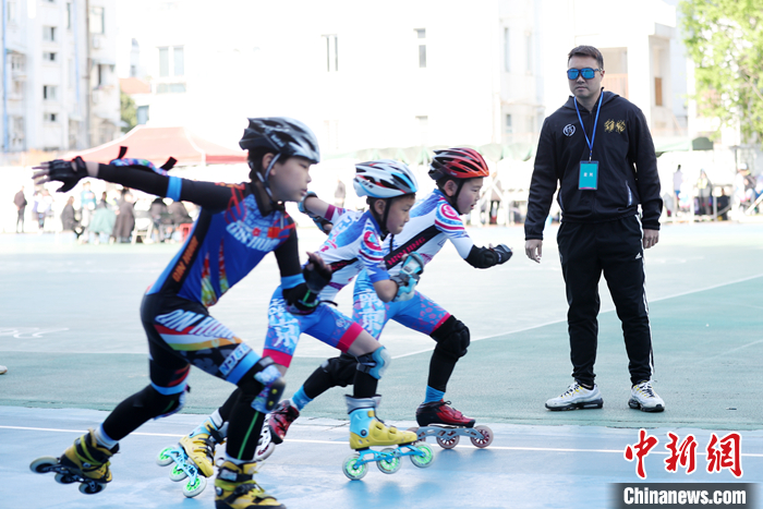 圖為4月8日,南京,蘇郡鋒指導孩子們進行輪滑訓練。 中新社記者 泱波 攝