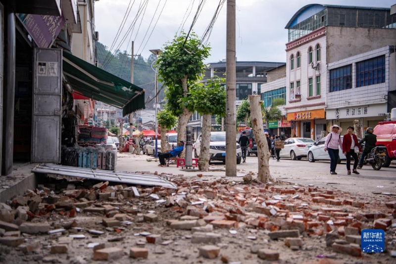 云南省保山市隆陽區(qū)瓦窯鎮(zhèn)一處受損的沿街房屋(5月3日攝)。新華社記者 江文耀 攝
