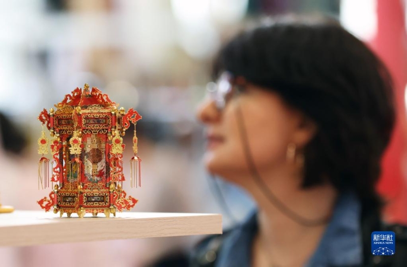 5月2日,在法國(guó)巴黎凡爾賽門展覽中心舉辦的巴黎博覽會(huì)上,一名女子在“遇·鑒中國(guó)——中華文化主題展”上參觀。