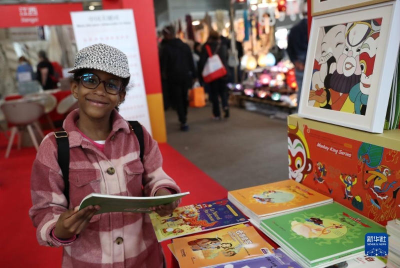 5月2日,在法國(guó)巴黎凡爾賽門展覽中心舉辦的巴黎博覽會(huì)上,兒童在“遇·鑒中國(guó)——中華文化主題展”上閱讀“美猴王”系列英文版圖書。