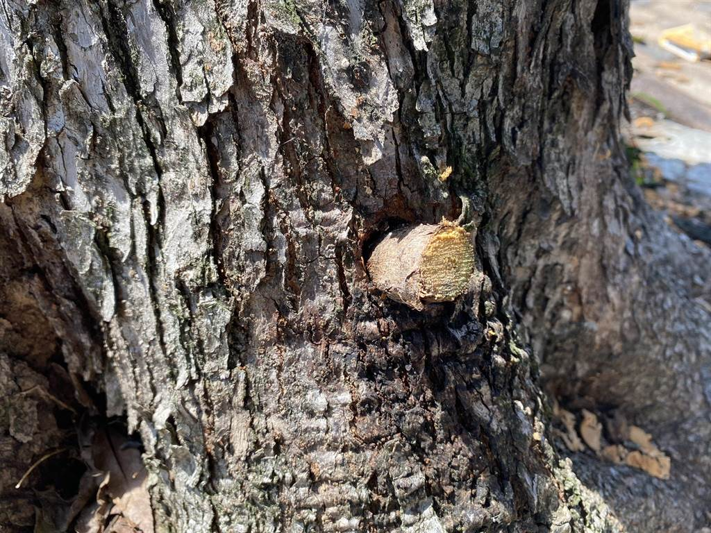 臺(tái)東縣關(guān)山鎮(zhèn)1棵臺(tái)灣欒樹(shù)遭人鉆孔。(蔡旻妤攝/中時(shí)新聞網(wǎng))