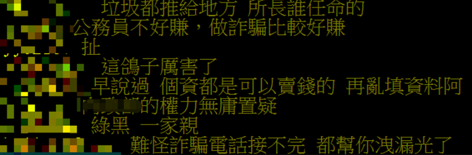 高階警官疑似與詐騙集團(tuán)合流,也引爆網(wǎng)絡(luò)上的討論熱度,鄉(xiāng)民紛紛留言,“笑了,難怪抓不完”、“已經(jīng)開始墨西哥化”、“真是一條鏈啊”、“民進(jìn)黨主政這幾年,警察根本體系性壞死”、“不怕個資外泄了,反正已經(jīng)被當(dāng)局賣掉”、“哈哈哈果然是EE詐騙園區(qū),警察是兼職”、“民進(jìn)黨管不到治安”、“沒救了吧”。