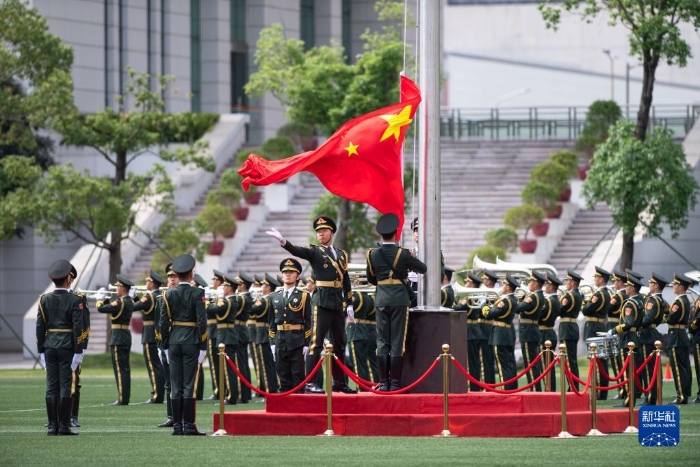 上午10時,駐澳部隊氹仔營區(qū),伴隨著慷慨激昂的國歌,五星紅旗冉冉升起。