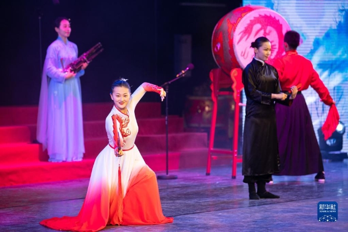 4月30日,中國人民解放軍駐澳門部隊官兵在《愛在澳門》文藝演出上表演。新華社記者 張金加 攝