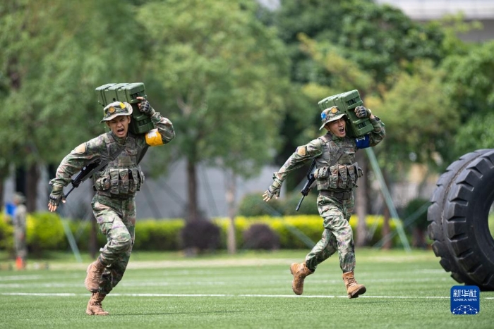 4月30日,中國人民解放軍駐澳門部隊官兵在第十七次軍營開放活動上進行戰(zhàn)斗班綜合技能競賽。新華社記者 張金加 攝