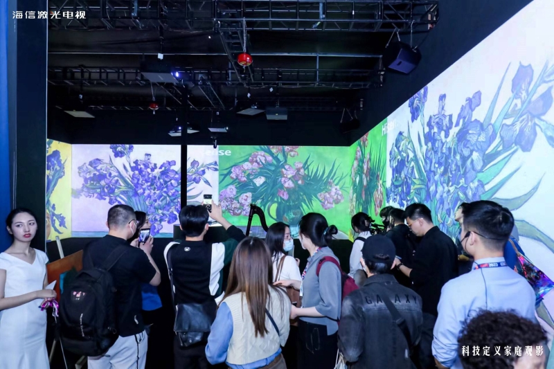 值得一提的是,海信使用激光顯示技術,以核心高端激光電視產品L8K、LX以及200英寸融合屏,疊加“海信激光場景展 · 致敬梵高”,在展會現(xiàn)場打造出了引人矚目的“沉浸空間”。據(jù)了解,“沉浸空間”占地面積超200平方米,為參展觀眾帶來了“強交互、強體驗、強沉浸”的光影體驗。