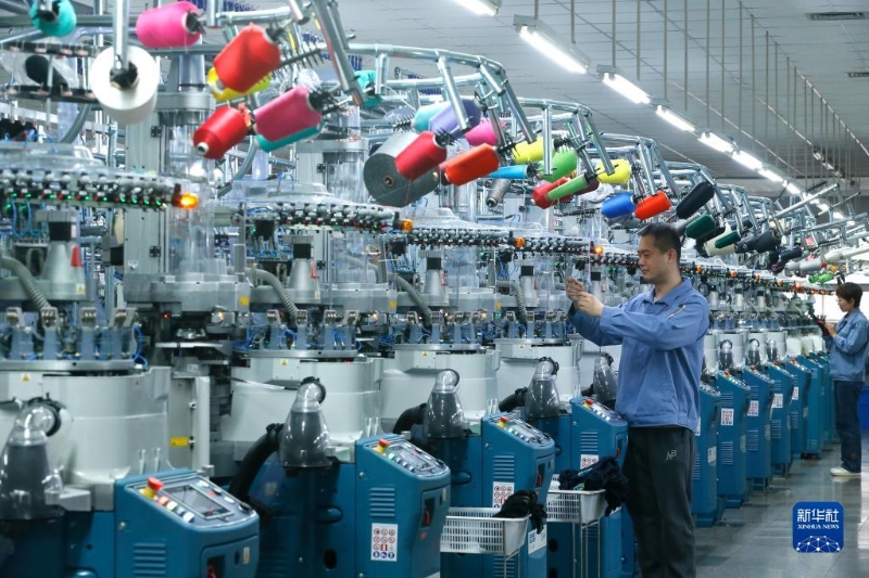 5月4日,在山東省青島市即墨區(qū)一家制襪企業(yè),工人生產(chǎn)出口到海外市場的產(chǎn)品。