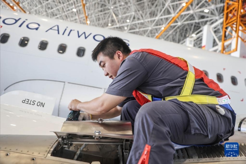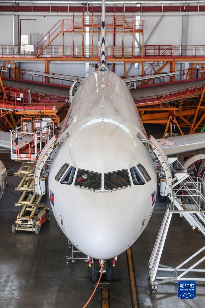 5月5日,海航技術(shù)旗下大新華飛機(jī)維修服務(wù)有限公司的機(jī)務(wù)維修人員對(duì)進(jìn)境飛機(jī)進(jìn)行檢修。