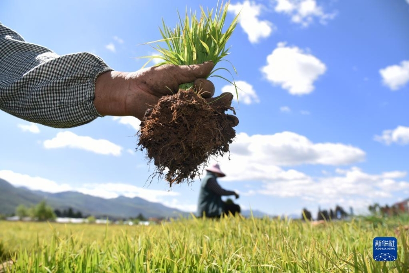 5月4日,在云南省麗江市古城區(qū)金山街道東元社區(qū)田間,村民在拔秧苗,準(zhǔn)備移栽水稻秧苗。