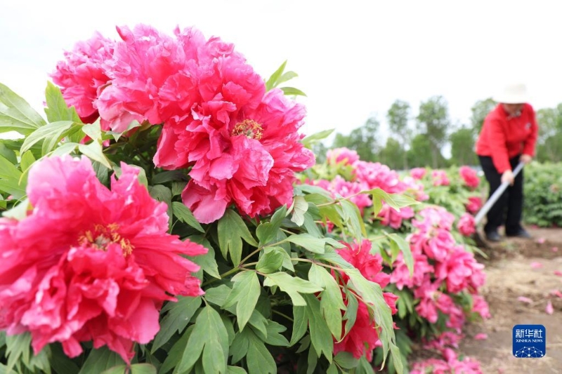 5月5日,河北省唐山市豐潤區(qū)石各莊鎮(zhèn)劉辛莊村農(nóng)民在花卉基地除草。