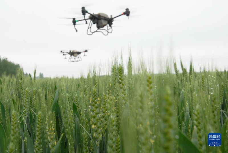 5月5日,山東省青島市即墨區(qū)移風(fēng)店鎮(zhèn)徐家溝村,無人機(jī)在田間進(jìn)行協(xié)同噴灑作業(yè)。