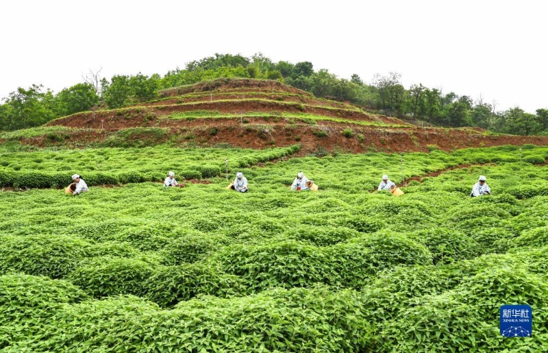 5月5日,河南省濟(jì)源市下冶鎮(zhèn)下韓旺村農(nóng)民在冬凌草種植基地采摘冬凌草。