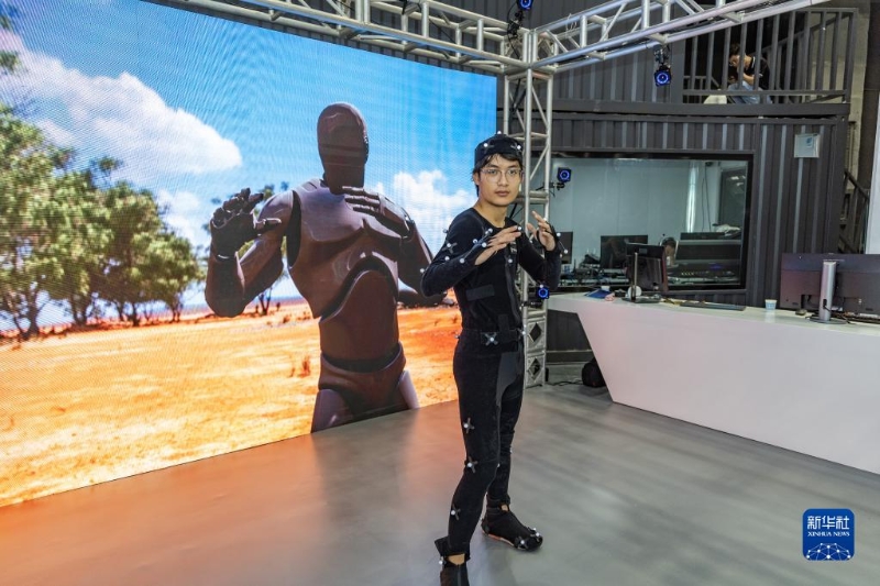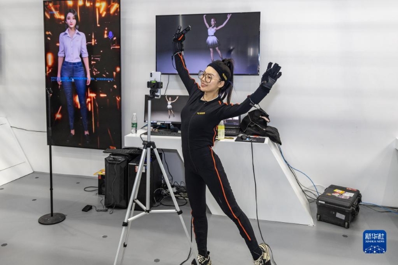 5月5日,在中國影視科技創(chuàng)新成果展上,參展企業(yè)展示光學(xué)動捕技術(shù)。