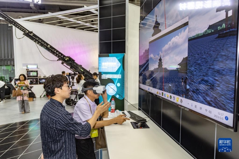 5月5日,在中國影視科技創(chuàng)新成果展上,參展企業(yè)展示感知虛擬制作技術(shù)。