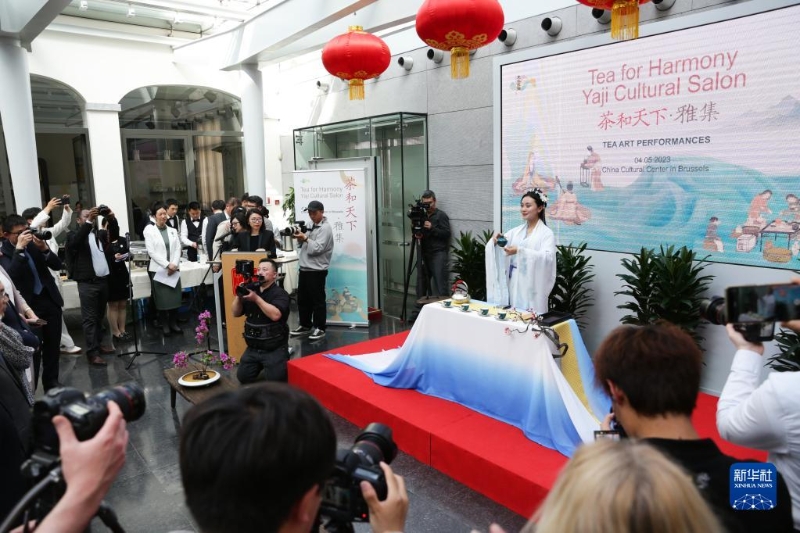 由中國文化和旅游部、中國駐比利時大使館、中國駐歐盟使團(tuán)共同舉辦的“茶和天下·雅集”比利時站活動4日在布魯塞爾中國文化中心開幕。新華社記者 鄭煥松 攝