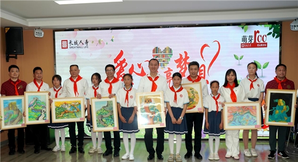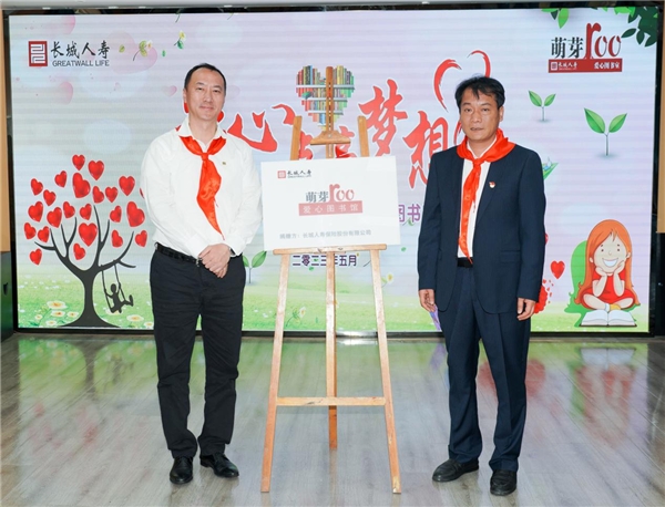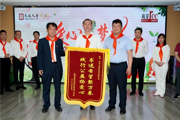 長城人壽黨委書記、董事長白力與祖庵中心學(xué)校校長馮軍奇、副校長宋廣柱一同為“萌芽100”愛心圖書室揭牌,進(jìn)行圖書捐贈(zèng),并接受校方回贈(zèng)的“書送希望聚萬卷 踐行公益揚(yáng)愛心”錦旗以及學(xué)生書畫作品。