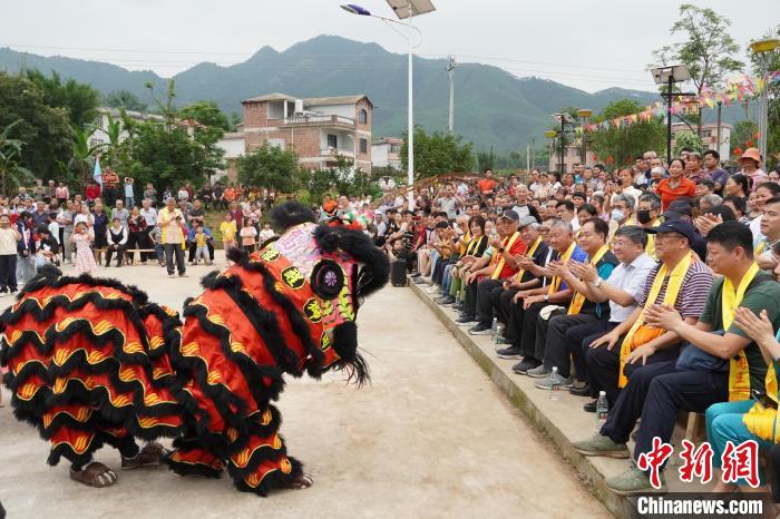 客家村落中,山歌世代傳。《客家迎客來》《月光光》《四??图掖髨F圓》……舞獅助興,歌舞傳情,賀州當(dāng)?shù)氐目图颐癖?,以客家特色?jié)目歡迎來訪的臺胞,兩地同胞還一同高歌《客家本色》,唱出“天下客屬一家親,隔山隔水不隔音”的濃濃親情。
