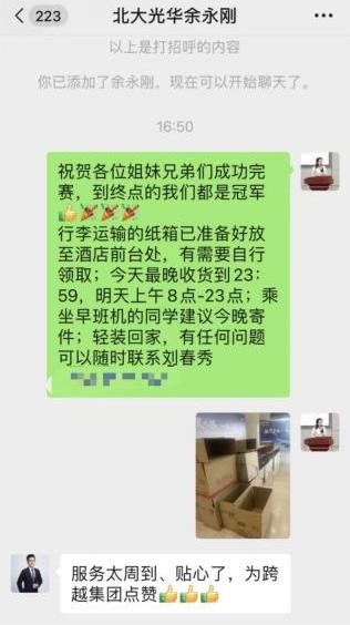 “我是第七次來(lái)到戈壁參賽,已經(jīng)是一個(gè)老戈友了,我身后堆積滿滿的行李,都是跨越速運(yùn)幫我們運(yùn)輸,解決了我們非常大的痛點(diǎn),我再也不用拖著這么大的行李上飛機(jī)了!”北大匯豐商學(xué)院的李世焜老師,在談及跨越服務(wù)的感受時(shí)說(shuō)道:“昨天晚上我們小伙伴們快遞的駝包,可能今天下午就已經(jīng)到家了,跨越速運(yùn)棒棒的!”