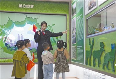 近日,福建省廈門市同安區(qū)人民法院發(fā)揮生態(tài)法治宣教基地平臺(tái)優(yōu)勢(shì),開(kāi)展法庭開(kāi)放日活動(dòng)。在同安區(qū)法院生態(tài)館內(nèi),法院干警為小朋友們講解福建省首例跨境涉大白鯊制品的危害珍貴、瀕危野生動(dòng)物罪案,寓教于樂(lè),寓學(xué)于樂(lè),通過(guò)面對(duì)面互動(dòng)、沉浸式體驗(yàn),在小朋友心中種下法治種子。圖為干警與小朋友互動(dòng)場(chǎng)景。