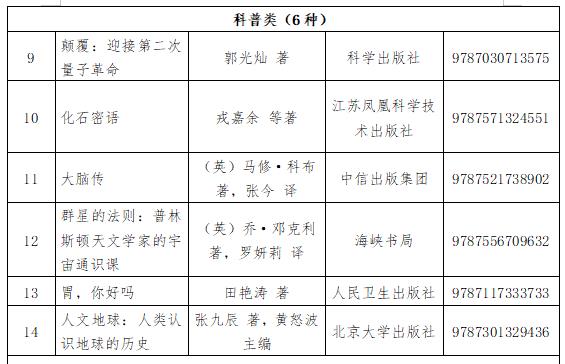 科普類圖書評委尹傳紅指出,獲獎(jiǎng)的科普類圖書涉及量子力學(xué)、化學(xué)、腦科學(xué)、天文學(xué)、醫(yī)學(xué)、地球科學(xué)、數(shù)學(xué)、植物學(xué)、生物學(xué)等諸多領(lǐng)域;題材新穎,有院士團(tuán)隊(duì)創(chuàng)作的“大家小書”,有一線醫(yī)生的健康科普,有作者數(shù)十年的研究成果展現(xiàn),有掃碼拓展閱讀,還有一些圖書講述了作者的個(gè)人科研經(jīng)歷,飽含對科學(xué)探索的滿腔熱忱。