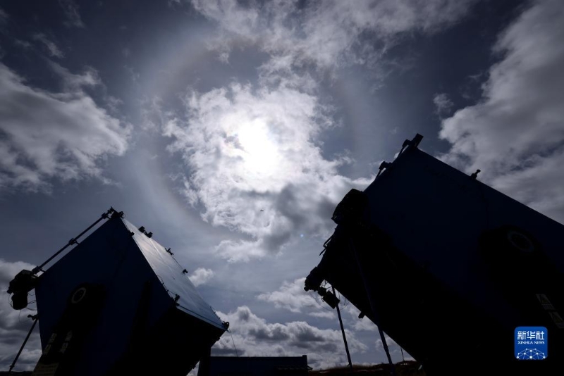 4月22日,高海拔宇宙線觀測站觀測基地廣角切倫科夫望遠鏡上空出現(xiàn)日暈。新華社記者 金立旺 攝
