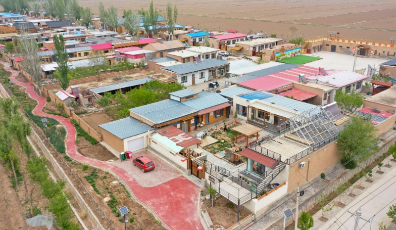 寧夏銀川市賀蘭縣立崗鎮(zhèn)星光村部分村民將庭院打造成民宿,發(fā)展鄉(xiāng)村旅游(5月7日攝,無人機(jī)照片)。新華社記者 馮開華 攝