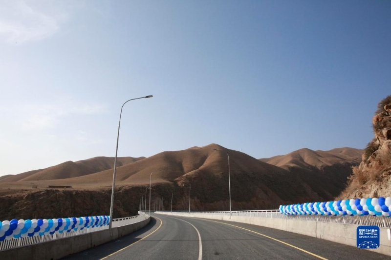 這是2021年11月10日拍攝的吉爾吉斯斯坦新北南公路二期工程的一座大橋。新華社發(fā)(羅曼 攝)