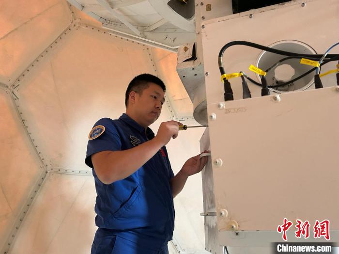 圖為許遙在進行設備檢查調試?!◆敽啤z