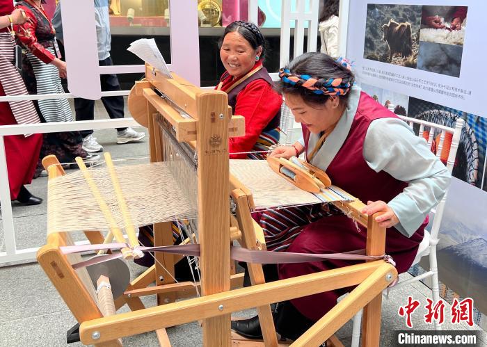 5月中旬,造訪“中華商業(yè)第一街”上海南京東路步行街的民眾,或許會(huì)看到這一獨(dú)特場(chǎng)景:身著傳統(tǒng)服飾的藏族婦女坐在氆氌機(jī)前,正靜心編織氆氌。