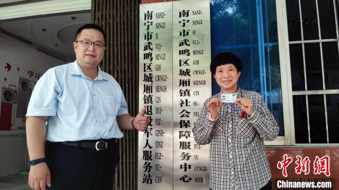 梁洲輔5月11日順利幫助母親辦理了武鳴區(qū)城鄉(xiāng)居民基本養(yǎng)老保險和醫(yī)療保險,并成為廣西首例辦理了臺灣居民居住證但沒有在當(dāng)?shù)鼐蜆I(yè),亦可成功辦理城鄉(xiāng)居民基本養(yǎng)老保險的臺胞。梁洲輔為母親按每年6000元(人民幣,下同)進行繳費,一次性補繳了15年共9萬元的養(yǎng)老金。今年6月起,張月霞每月便可領(lǐng)到800多元的養(yǎng)老金。當(dāng)天,張月霞也成功辦理了城鄉(xiāng)居民基本醫(yī)療保險。