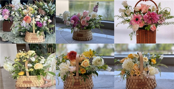 活動(dòng)現(xiàn)場(chǎng),花藝插花課老師詳細(xì)地為女職工介紹了鮮花品種和寓意,耐心講解插花的花材選擇、色彩搭配、擺放技巧等花藝知識(shí)。帶領(lǐng)大家認(rèn)識(shí)了手中的花材,其中有溫馨的康乃馨、恬靜的芍藥、熱烈的玫瑰,還有一些搭配使用的滿天星。隨后,老師向大家現(xiàn)場(chǎng)演繹與指導(dǎo)如何藝術(shù)插花,大家一邊看,一邊拿著自己眼前的花材進(jìn)行對(duì)比,琢磨著如何下手。經(jīng)過一個(gè)多小時(shí)的創(chuàng)作,一籃籃燦爛繽紛、新穎別致的插花作品“新鮮出爐”?;ㄋ?yán)蠋煂?duì)插花作品進(jìn)行一一點(diǎn)評(píng)指導(dǎo)。