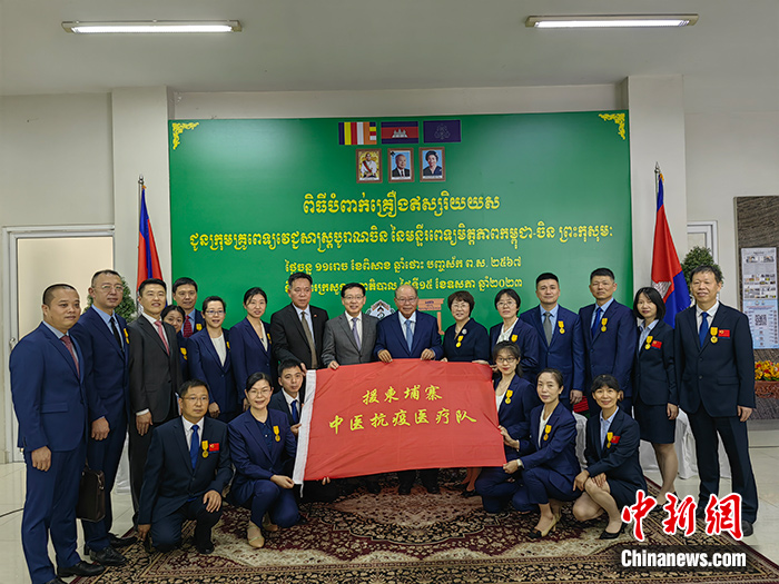 當(dāng)天,柬埔寨王國(guó)衛(wèi)生部舉行歡送暨授勛儀式,表彰中國(guó)援柬中醫(yī)抗疫醫(yī)療隊(duì)為柬埔寨人民健康福祉作出的重大貢獻(xiàn)。蒙文興和中國(guó)駐柬埔寨大使王文天出席儀式。