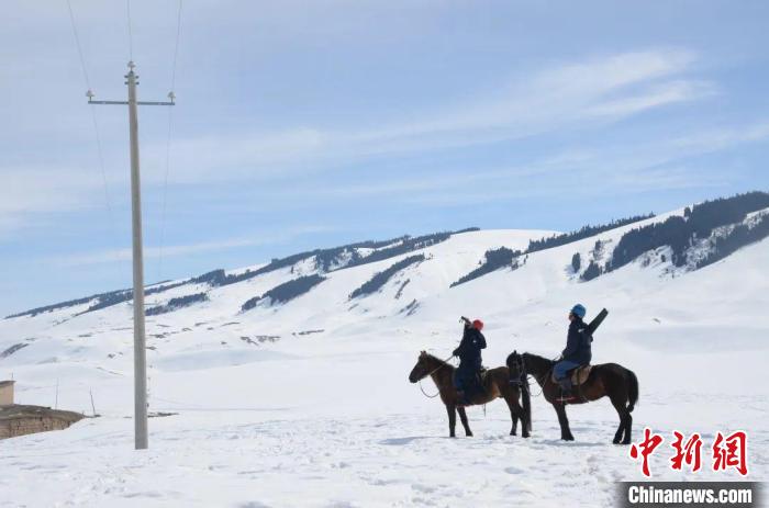 阿曼吐爾·依沙木丁與供電所員工騎馬巡視線路。(資料圖) 劉顯剛 攝
