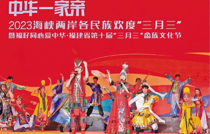 圖:5月11日,福建推出23條新舉措促閩臺文旅融合。圖為今年4月舉辦的2023海峽兩岸各民族歡度“三月三”活動現(xiàn)場。\中新社