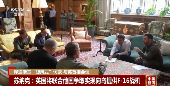 在會(huì)談后的記者會(huì)上,蘇納克表示眼下是俄烏沖突的關(guān)鍵時(shí)刻,并再次強(qiáng)調(diào)對(duì)烏克蘭提供全面支持的重要性,他說,英國(guó)將繼續(xù)就可能向?yàn)蹩颂m提供F-16戰(zhàn)機(jī)與其他國(guó)家開展合作。