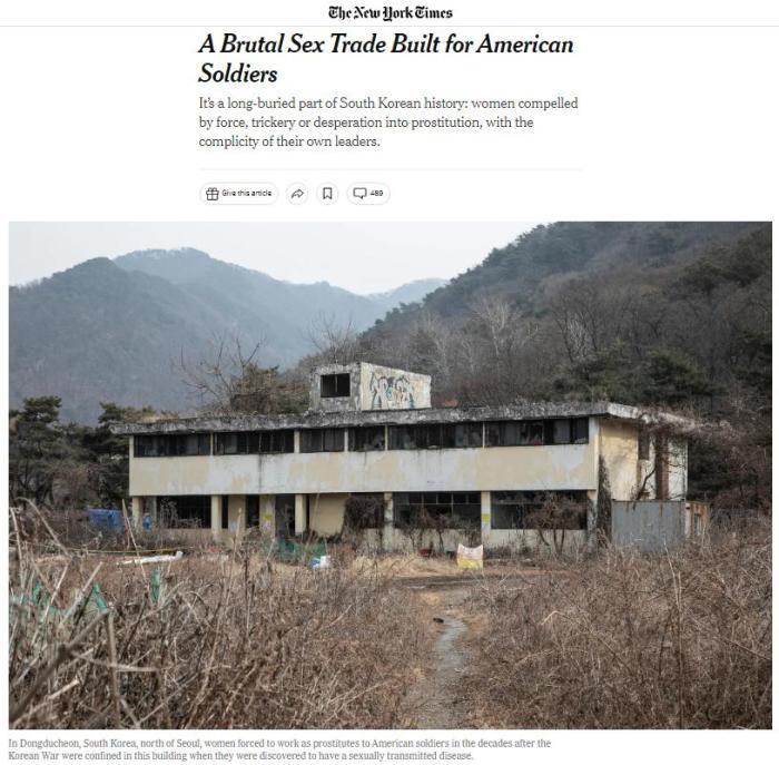 《紐約時(shí)報(bào)》文章稱,“慰安婦”這個(gè)委婉的說(shuō)法通常用來(lái)形容第二次世界大戰(zhàn)期間被日本人強(qiáng)征為性奴隸的韓國(guó)和其他亞洲國(guó)家女性。但在朝鮮戰(zhàn)爭(zhēng)后,不少韓國(guó)女性被強(qiáng)迫或誘騙至美軍基地周圍的“基地村”工作。
