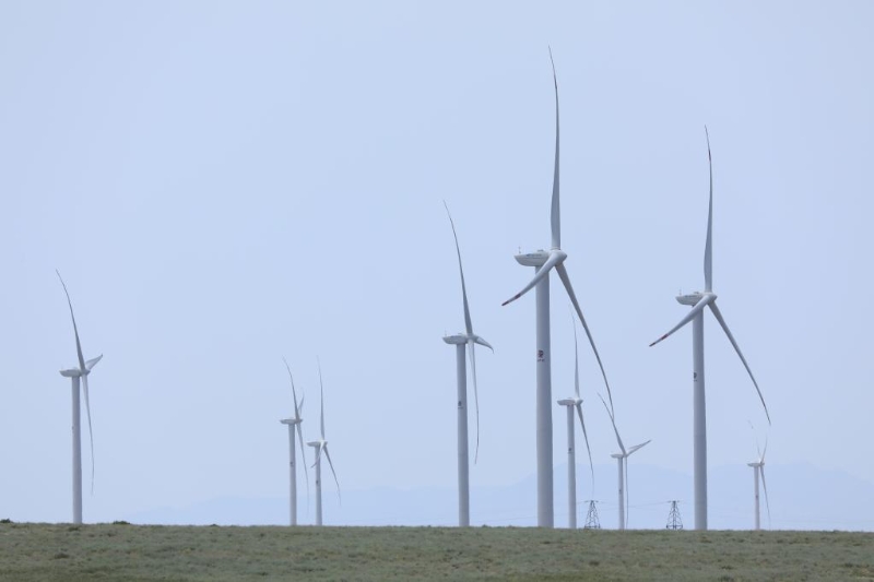 圖為2021年5月24日在哈薩克斯坦扎納塔斯拍攝的風(fēng)電場的風(fēng)機。新華社發(fā)(奧斯潘諾夫攝)