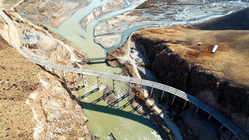 這是2020年10月27日在吉爾吉斯斯坦拍攝的新北南公路二期工程施工現(xiàn)場。新華社發(fā)(中國路橋公司供圖)