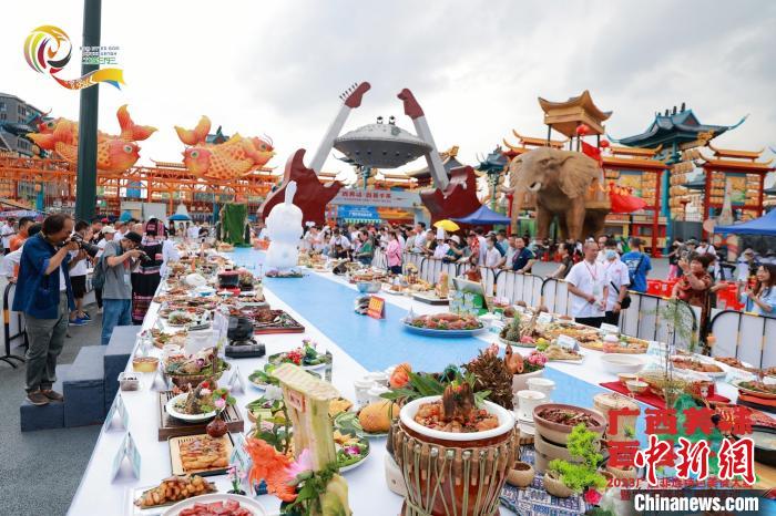 大賽匯集來自廣西111個縣市區(qū)共404道菜肴、點心及地方特色小吃,如鮮香爽辣的柳州螺螄粉、入口即化的荔浦芋扣肉、甘香醇厚的瑤鄉(xiāng)油茶、酸辣開胃的高峰檸檬鴨、鮮嫩多汁的梧州紙包雞、清爽下火的龜苓膏、細(xì)膩嫩滑的冰渣豆花和香甜軟糯的北海流心蛋黃酥等,讓人垂涎欲滴。非遺美食傳承人現(xiàn)場展示各類非遺美食制作技藝,燴出濃濃壯鄉(xiāng)煙火味,讓觀眾感受廣西飲食文化獨特魅力。