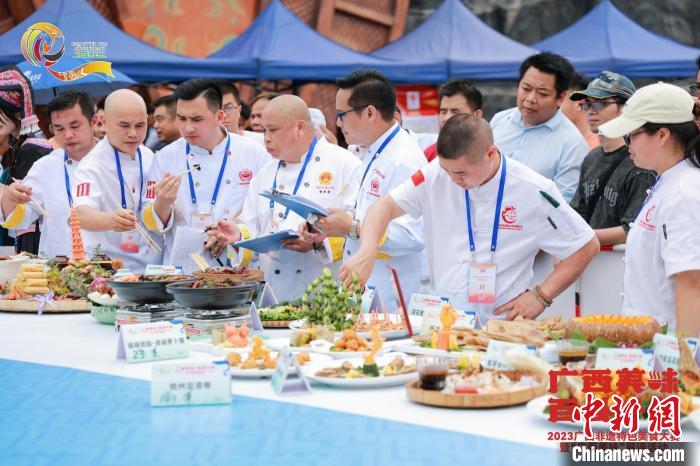 中新網(wǎng)南寧5月17日電(張廣權(quán))2023廣西非遺特色美食大賽暨“廣西美味”展評活動16日在廣西南寧舉行。大賽匯集廣西111個縣市區(qū)的非遺特色美食及地方特色小吃,覆蓋廣西14個地市127個商家,涉及近百個非遺名錄制作技藝菜品。
