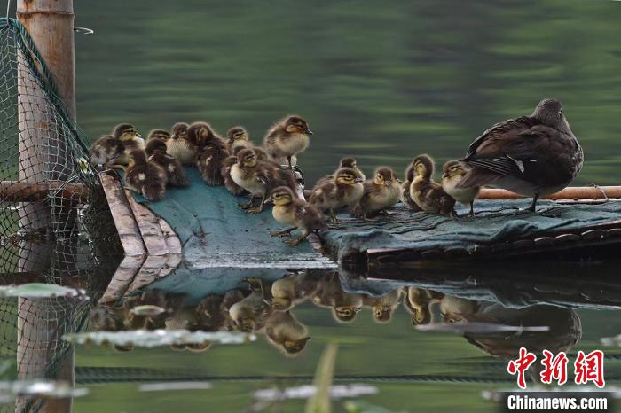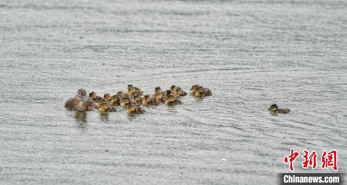 中新網(wǎng)杭州5月18日電 (王題題)18日,記者從浙江杭州西湖鴛鴦護衛(wèi)隊獲悉,杭州西湖里的第11窩小鴛鴦于17日出生,共計25只,刷新近七年來杭州西湖小鴛鴦單窩出生量最多的紀(jì)錄。