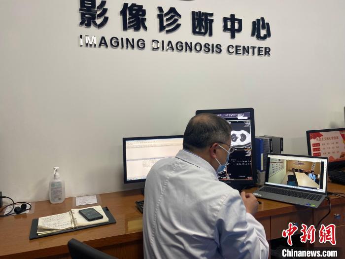 圖為一海島醫(yī)院內(nèi)醫(yī)生通過互聯(lián)網(wǎng)與上級(jí)醫(yī)院進(jìn)行影像診斷交流。 朱凌捷 攝