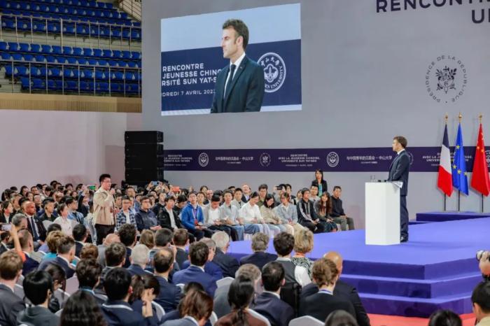 馬克龍?jiān)谘葜v中說,希望青年人能夠共同應(yīng)對當(dāng)今世界包括氣候變化、生物多樣性、科技等方面的挑戰(zhàn)?!爱?dāng)今經(jīng)濟(jì)增長的挑戰(zhàn)尤其是脫碳增長的挑戰(zhàn)非常大,對于青年學(xué)子來說通過研究、創(chuàng)新應(yīng)對挑戰(zhàn)非常重要。”他提到,中山大學(xué)中法核工程與技術(shù)學(xué)院為此開展了大量的相關(guān)工作。