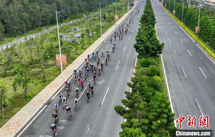 5月21日,闊別三年的兩岸職工自行車賽在福建省平潭綜合實(shí)驗(yàn)區(qū)再次鳴槍開賽,吸引兩岸近700名選手競(jìng)逐。(無人機(jī)照片) 中新社發(fā) 林君斌 攝