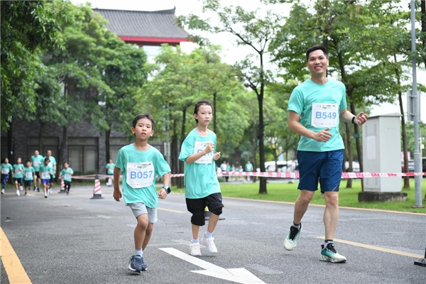 嘣!隨著發(fā)令槍一聲巨響,600余名選手邁開矯健的步伐,奔向終點(diǎn)。據(jù)主辦方介紹,比賽設(shè)成人組(6公里)、青少年A組(4.5公里)、青少年B組(3公里)三個(gè)組別。部分1-3年級(jí)的孩子在父母的陪伴下完成了比賽,4-12年級(jí)的同學(xué)們獨(dú)立完成比賽。記者留意到,現(xiàn)場(chǎng)選手很多是一家大小齊上陣,一家人互相鼓勵(lì),共同挑戰(zhàn)極限。
